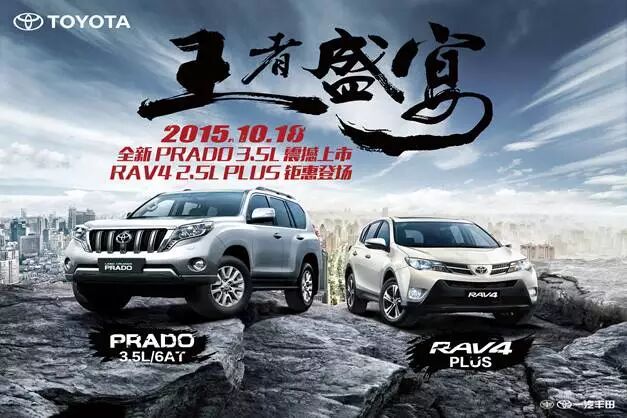 10月18日一汽丰田王者盛宴,全新PRADO 3.5L强势来袭!一汽丰田SUV家族又一全新力作让您随时随地体验世家荣耀和王者“丰”范!更有RAV4 2.5L PLUS钜惠登场!全新普拉多3.5L售价47.98万起!