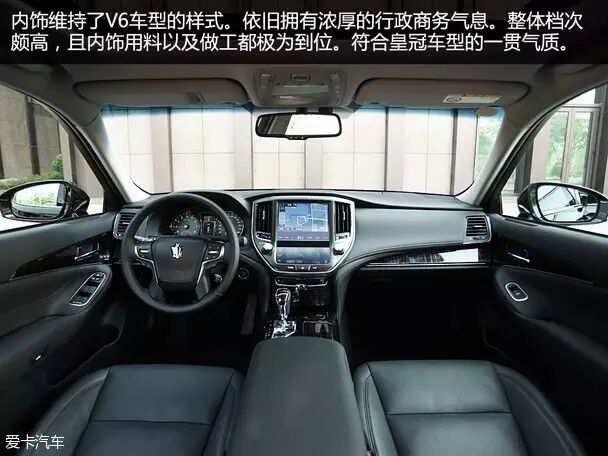 内饰同样没有做出特别的修改,保持了与V6车型的一致性。相比略显激进年轻的外观设计来说,内饰的整体风格则又回到了皇冠应有的那份笃定与稳重。相比上一代的内饰设计,全新皇冠的内饰风格更加舒展,更加丰富的层次感以及细腻的包裹材质都赋予了它更加精致典雅的视觉效果。