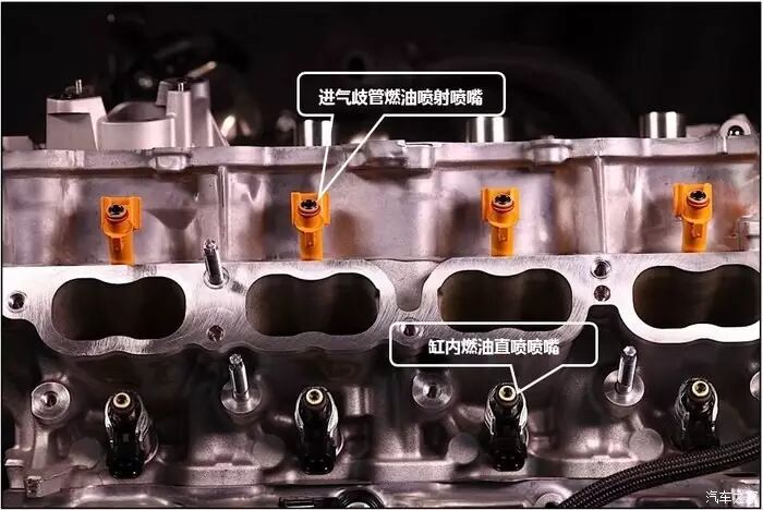 其它诸如丰田的燃油双喷射系统,4个气缸使用8个喷油嘴,其中4个位进气歧管喷射,另外4只为缸内直喷