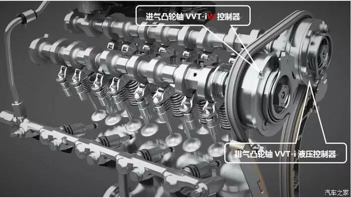 下图为:丰田2.0T涡轮增压引擎,使用双VVT-iW,广角度正时连续调整,对进气门做特殊控制,来实现内燃机的阿特金森循环