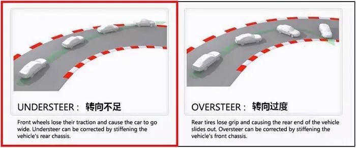 下图左侧即为前驱车操控劣势上,弯道驾驶的转向不足很明显