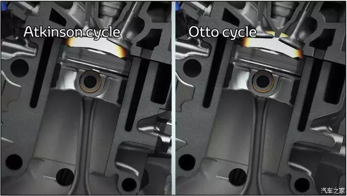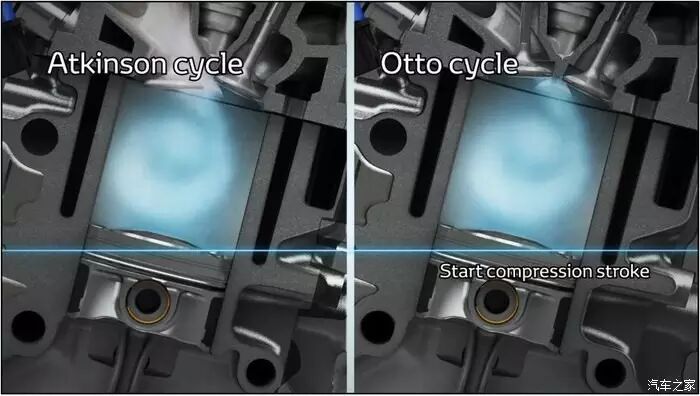 下图为:吸气冲程(左侧为阿特金森循环,右侧为奥托循环)