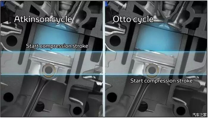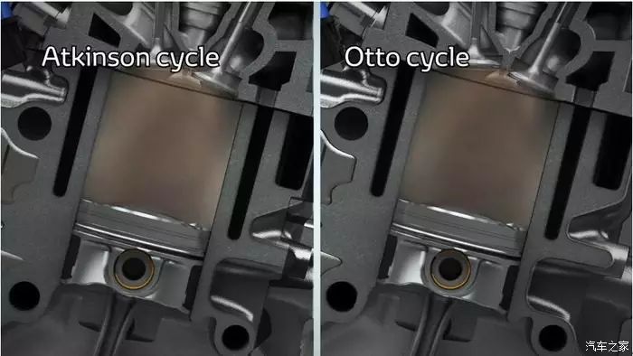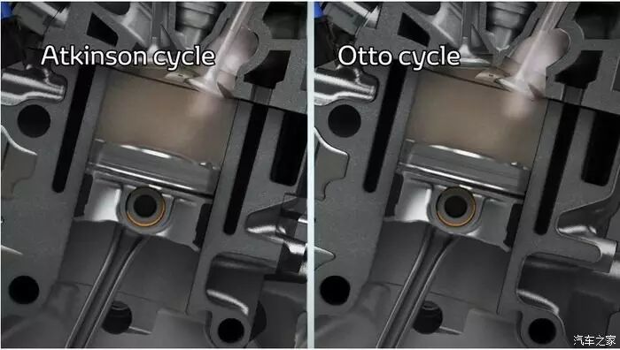 下图为:压缩冲程(左侧为阿特金森循环,右侧为奥托循环)