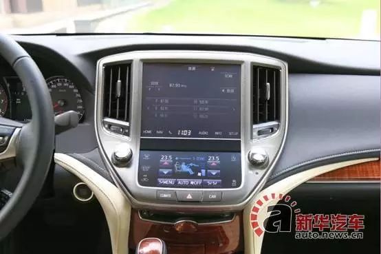 内饰方面,丰田也进行了大胆的尝试。采用大面积软性皮质包裹,辅以亮面木纹装饰彰显高贵品质。内饰有黑色和亚麻色两种可选。TFT双屏可触多媒体显示系统是新车内饰设计最大亮点,上方8寸大屏主要显示导航、行车数据、多媒体信息,下方5寸屏幕主要为空调调节等辅助功能。
