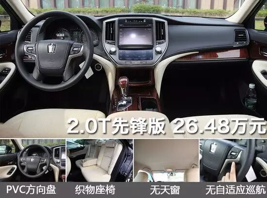 从配置单中我们不难发现,先锋版车型相比于时尚版只是缺少了一些舒适性的配置,比如真皮座椅/方向盘、天窗、自适应巡航、无钥匙进入等功能,但是在主被动安全方面却依然表现出色,多媒体系统的功能也与时尚版保持一致,考虑到这款车的售价,这样的配置水平完全可以接受,26万多的价格加上市场终端的优惠,24万元就能搞定一部皇冠,是不是很有诱惑力呢?