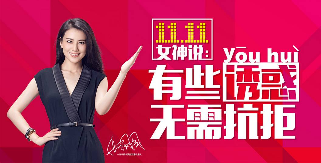 一汽丰田携手天猫商城在一汽丰田官方旗舰店举办双十一“一汽丰田 一起丰狂”活动。缤纷多彩的活动,物超所值的商品,让你疯狂HOLD不住!更有女神高圆圆牵手礼!至诚款待,优享超凡品质。