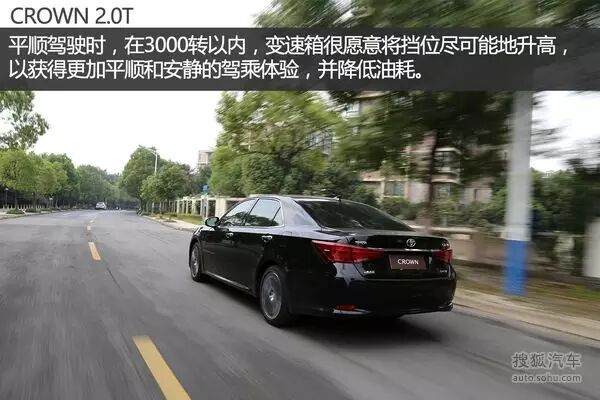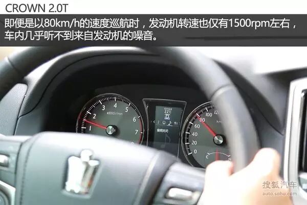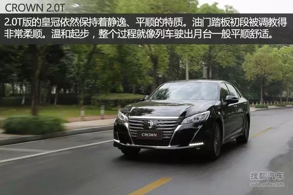 从驾驶感受来看,2.0T版的皇冠依然保持着静逸、平顺的特质。尝试温和起步,其过程非常平稳。油门踏板的初段的调校非常温和,整个过程就像一辆磁悬浮列车缓缓驶出月台。虽然这台皇冠已经没有了V6发动机的护航,但低速时的平顺性和静逸程度几乎与V6版本一模一样。