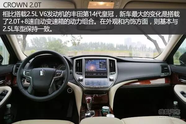 相比此前上市的丰田第14代皇冠,其最大的变化是搭载了2.0T+8速自动变速箱的动力总成。在外观和内饰方面,则基本与2.5L V6车型保持一致。