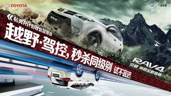 “私奔R计划 撩动一路激情”2015年一汽丰田RAV4私奔R计划收官品驾会于11月7-8日在长春卡门360°驾乘体验基地精彩上演。这里拥有接近两万平米的硬化路面、东北地区唯一的专业越野体验赛道。一汽丰田全新RAV4在这里肆意驰骋,挑战各种复杂路况,以前所未有的全新境界,向人们展现全方位的优越性能!
