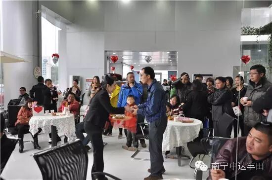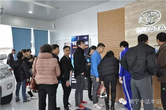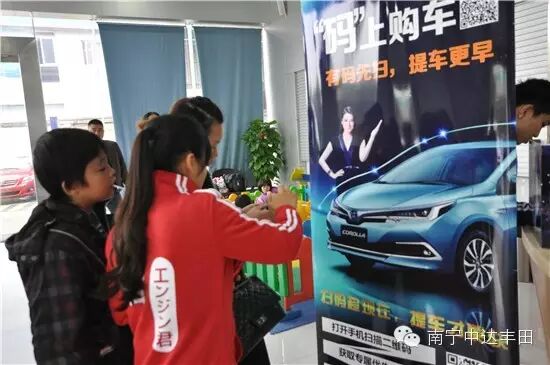 【上午十点,客户陆续来到我店进行签到,领取签到礼品,并参与扫一扫进行卡罗拉双擎预约订车电子排号】