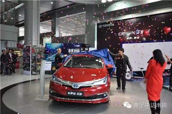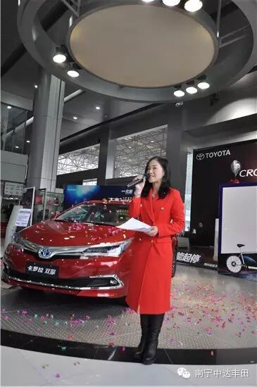 【南宁中达销售总监周先生为我们的全新卡罗拉双擎致辞,并邀请活动当天首位订购卡罗拉双擎的客户一起为新车揭幕】