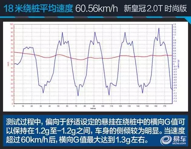 “2.0T+8AT”配合“前置后驱”的驱动形式,通过这一系列的硬件展示,人们难免会对它的操控表现产生出极大的兴趣。不过由于超过5米的车身长度以及偏向舒适的底盘调校,使得新皇冠在操控上的表现并没有太大的亮点,在这一点上,2.0T车型则传承了这个性格。通过计算,这台皇冠2.0T的平均绕桩速度为60.56km/h,成绩并不算突出,但相比上代车型来说进步还是明显的。