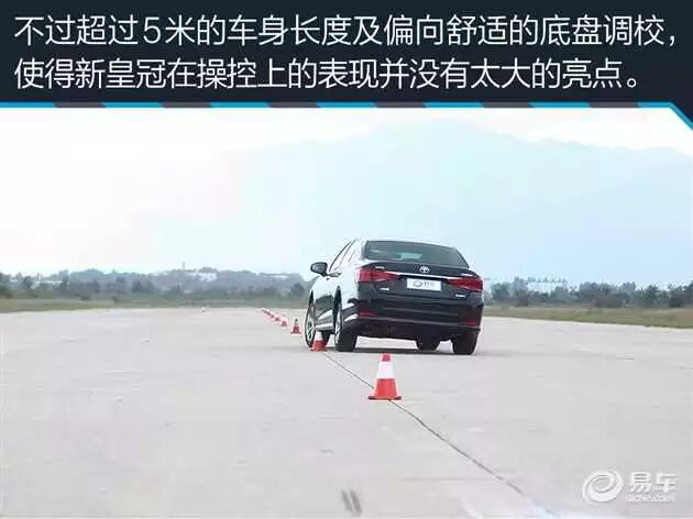 实际的测试中,尺寸较大的方向盘和较大的转向比相对比较吃亏,并且在转向精度和指向性上有些模糊,驾驶者必须用较大的转向动作完成。超过5米的车身长度使其在绕桩过程中并不能随心所欲,此外,由于悬挂整体调校偏向舒适,所以在绕桩过程中车身的侧倾较为明显。