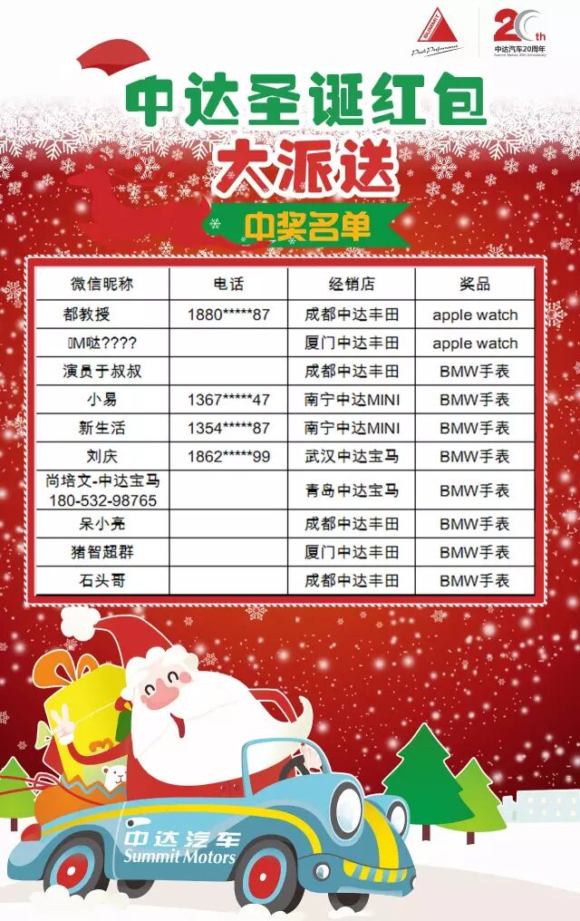 请以上十位小伙伴速速联系经销店,礼品需到店领取哦!首次联系时间截止至2015年12月31号!过期不候哦!