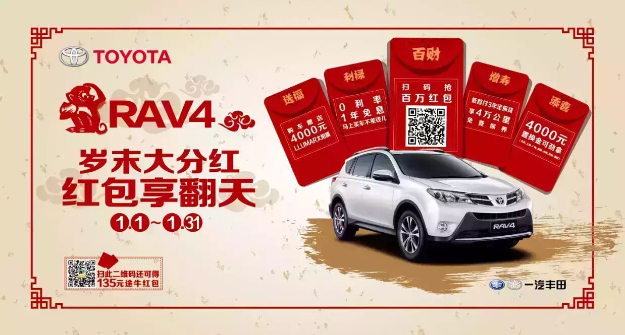 RAV4还携手途牛旅游网大派红包