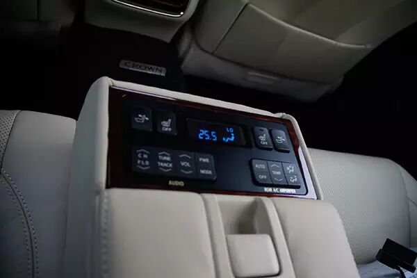 更值得一提的是,后排中央扶手上密密麻麻后排操作按键称得上是皇冠整体舒适型配置中最大的亮点。可控制功能包括独立空调、座椅加热、多媒体娱乐、后排座椅靠背调节。