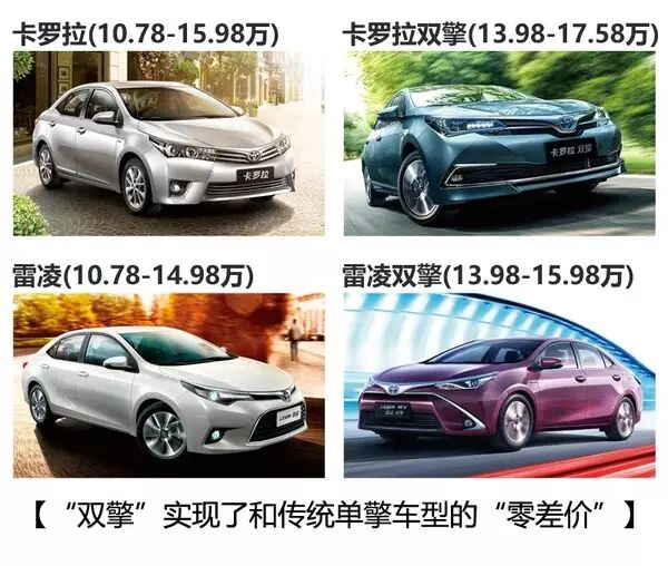 2015年 11月,卡罗拉双擎和雷凌双擎在国内上市,公布的最低价格为13.98万元,高端配置一应俱全的旗舰版不到18万元,“双擎”实现了和传统单擎车型的“零差价”;混合动力总成的国产化为“双擎”雷凌和卡罗拉的“差价归零”奠定了底气。