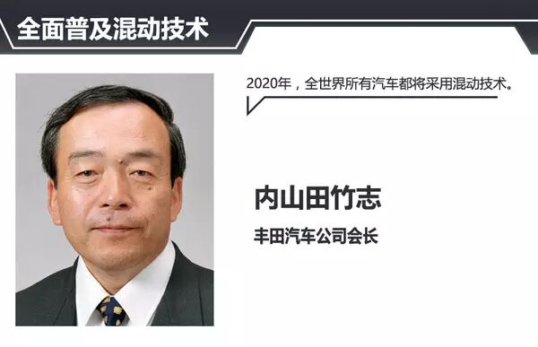 这样一来,通过开发混合动力所积累起来的电池、电机、电控等核心技术就成为新能源车的基础技术。丰田研发的新能源车,无须另起炉灶,而是在混合动力HEV的成熟基础上的继续延伸。在常熟与内山田会长的一次交流中,他说:到2020年,全世界所有汽车都将采用混合动力技术。许多媒体同行听得一头雾水,我却明白此话的妙处。