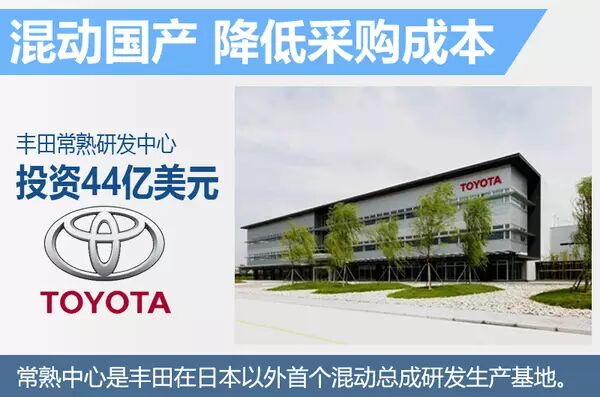 好在丰田的行事风格是稳扎稳打。2011年,丰田投资44亿美元,在常熟建立丰田汽车研发中心,这也是为实现混合动力系统的本地化,大幅降低采购成本,在日本以外建立的第一个混合动力总成研发生产基地。