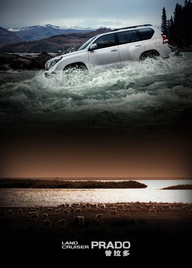 水,是可以静静流淌,也可以四溅激情的美的东西。当它激昂时,它是你想要亲历的一种奔放,车轮激荡起的水花,定格在画面里的是那一瞬的愉悦。若它婉约静谧,夕阳之下,一湾清水、涟漪草地上散落着错落羊群。不想打扰,就把普拉多停在远一点的地方,让它们享受安宁,我静静观赏。