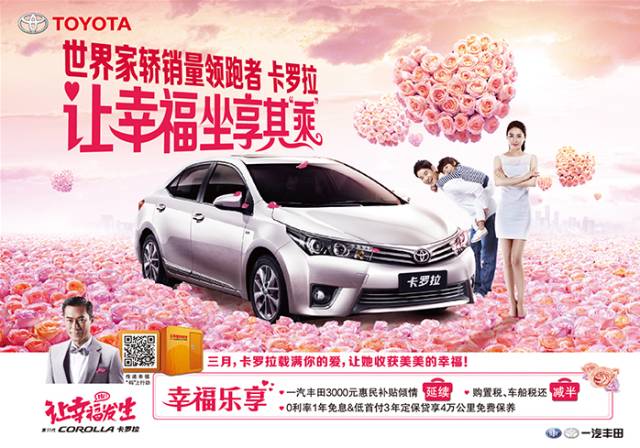 温暖三月,幸福来袭,全新卡罗拉在这个乍暖还寒的时节陪伴您告别漫长冬季的严寒,迎来春天的第一缕暖阳。在这个生机盎然,万物萌动的日子里,与爱人孩子开启一场难得的远郊之旅亦或者享受情侣二人的踏青之行,幸福路上,卡罗拉总给您贴心关怀,伴您左右。岁月流转,致力于“为世界上的每一个人带来幸福与快乐”的理念始终不变,卡罗拉愿助力您的幸福之路,让幸福坐享其“乘”。