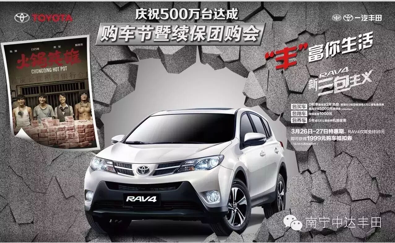 8、RAV4南宁中达7台精品现车购车只需多缴99元即可享额外1999元现金优惠!