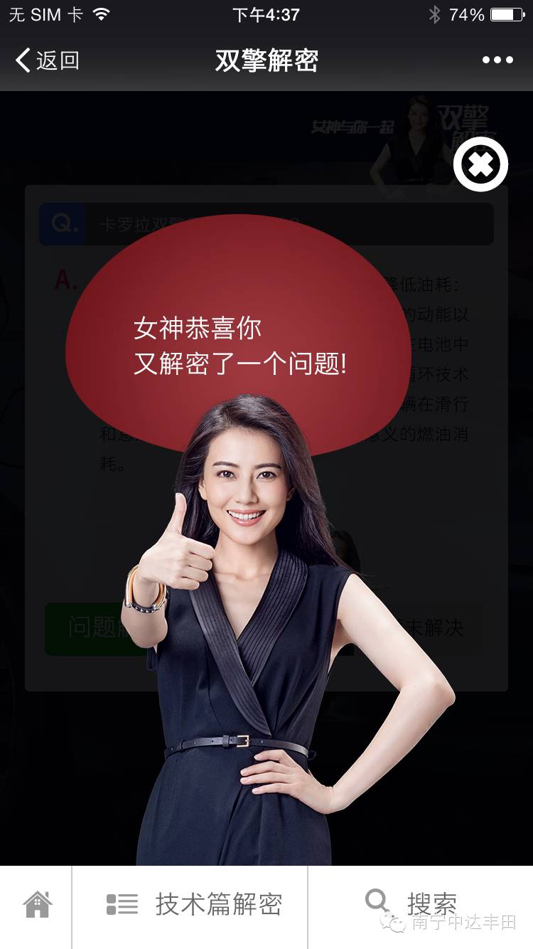 双擎解密微信平台采用了分类Q&A的形式,通过问题与答案让普通用户通过互动阅读的方式充分了解卡罗拉双擎的工作方式以及使用方法,借此了解油电混合动力丰田双擎家族中这最闪耀的一颗新星:卡罗拉双擎的优异、成熟的设计以及易于使用的特性。
